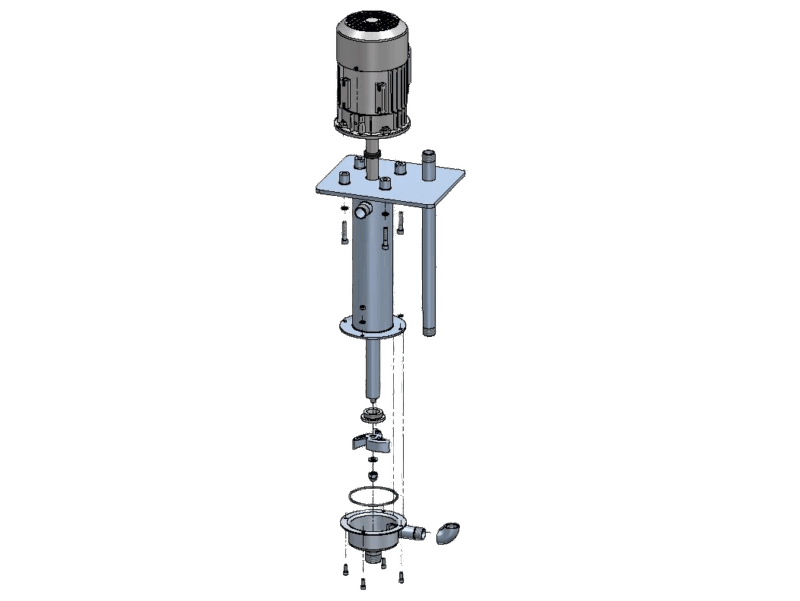 Vertikala centrifugalpumpar utformade för pumpning eller cirkulation av medier i industriella tillämpningar. Dessa är enstegs pumpar med ett pumphus som är direkt nedsänkt i vätskan, drivs av en elmotor och utrustade med ett öppet rotorblad som ger goda möjligheter att hantera fasta partiklar. CTV centrifugalpumpar finns i plast (PP eller PVDF) eller rostfritt stål AISI 316L.