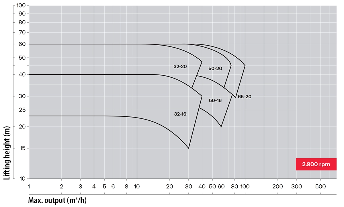 | Pump length: | from 0.3 to 1.8 meters – the pump can be extended using an extension on the suction side enabling operation with the liquid level below the impeller |
