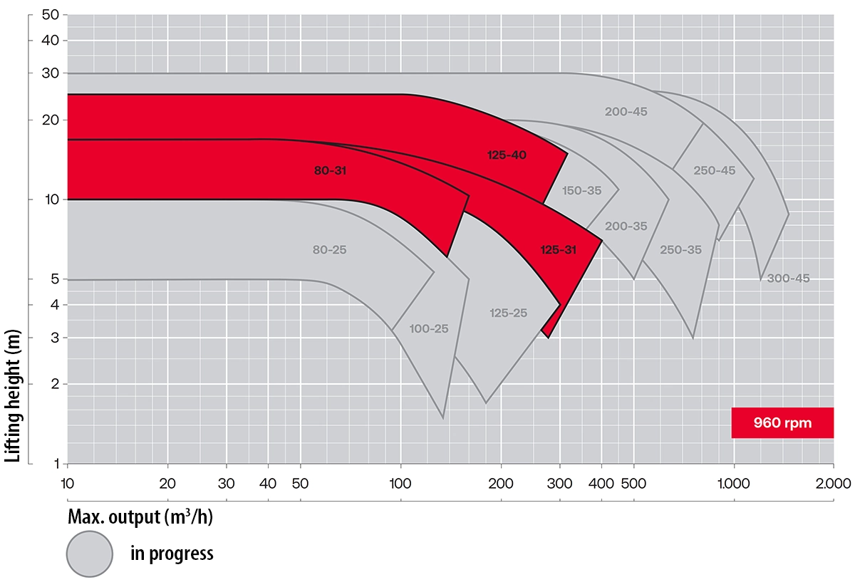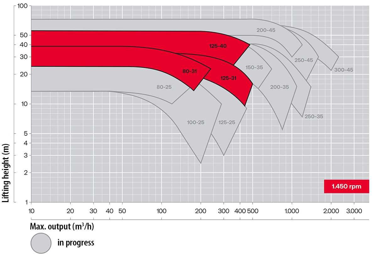 | Discharge nozzle: | from DN 80 to DN 125 |