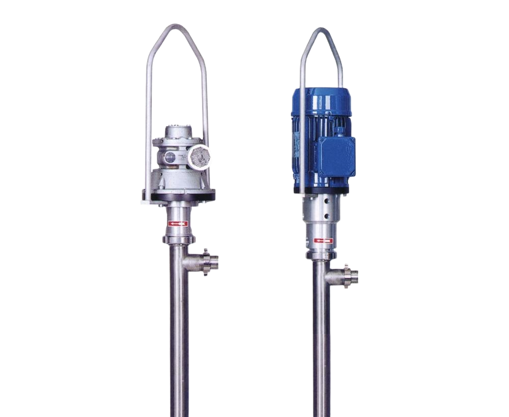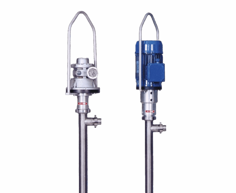 Electric or air operated drum and container pumps are lightweight, handy and very powerful devices for an economical and safe filling and transferring of thin to medium viscous media, neutral or aggressive, non-flammable or flammable substances out of drums and containers.