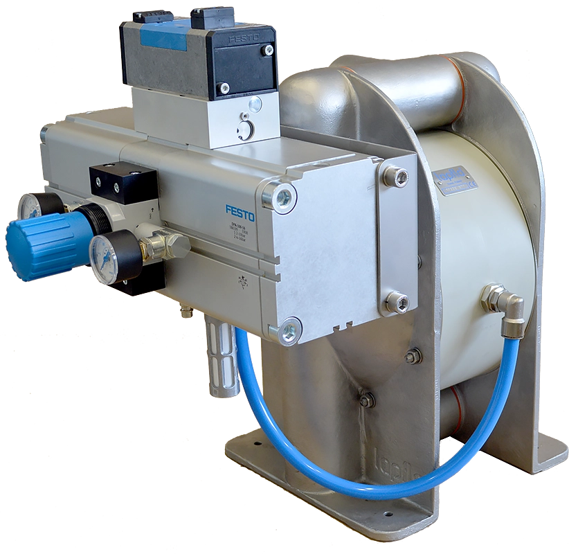 The only difference between TF and standard AODD pump is that the pump is not supplied with air directly but through pressure booster.