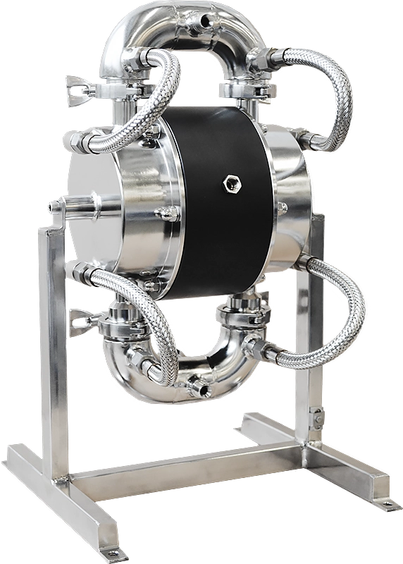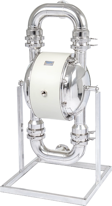 They are compact, robust and easy to maintain, minimizing service costs and process downtime. The main advantages of these pumps are the oil-free air distributor, maintenance-free check valves and full visibility for inspection of all wetted parts. There are no hidden spaces where bacteria could grow. The pump can also be cleaned and sterilized in place (CIP and SIP).