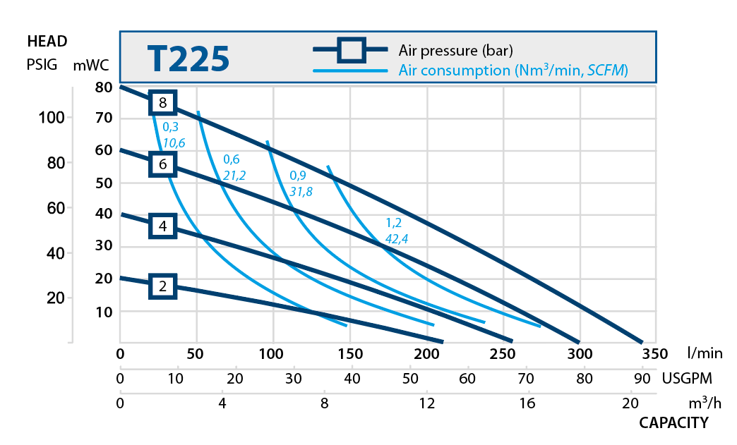 | Max. discharge pressure: | 8 bar | |