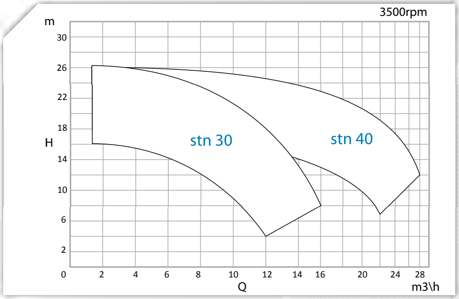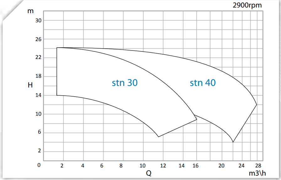 | MAXIMUM FLOW-RATE @ 2900 RPM: | 28 m3/h |